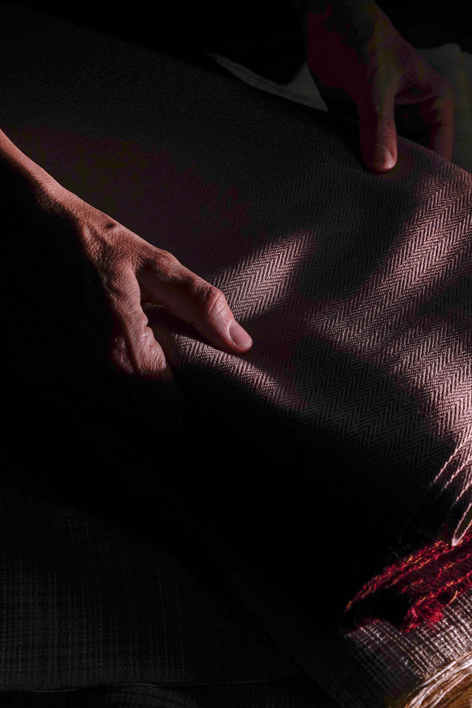 El tapado Kume fue confeccionado con técnicas de sastrería tradicional y alta costura. La tela utilizada para hacer esta prenda fue elaborada manualmente en telares del siglo XIX en la tejeduría histórica de Ayma.